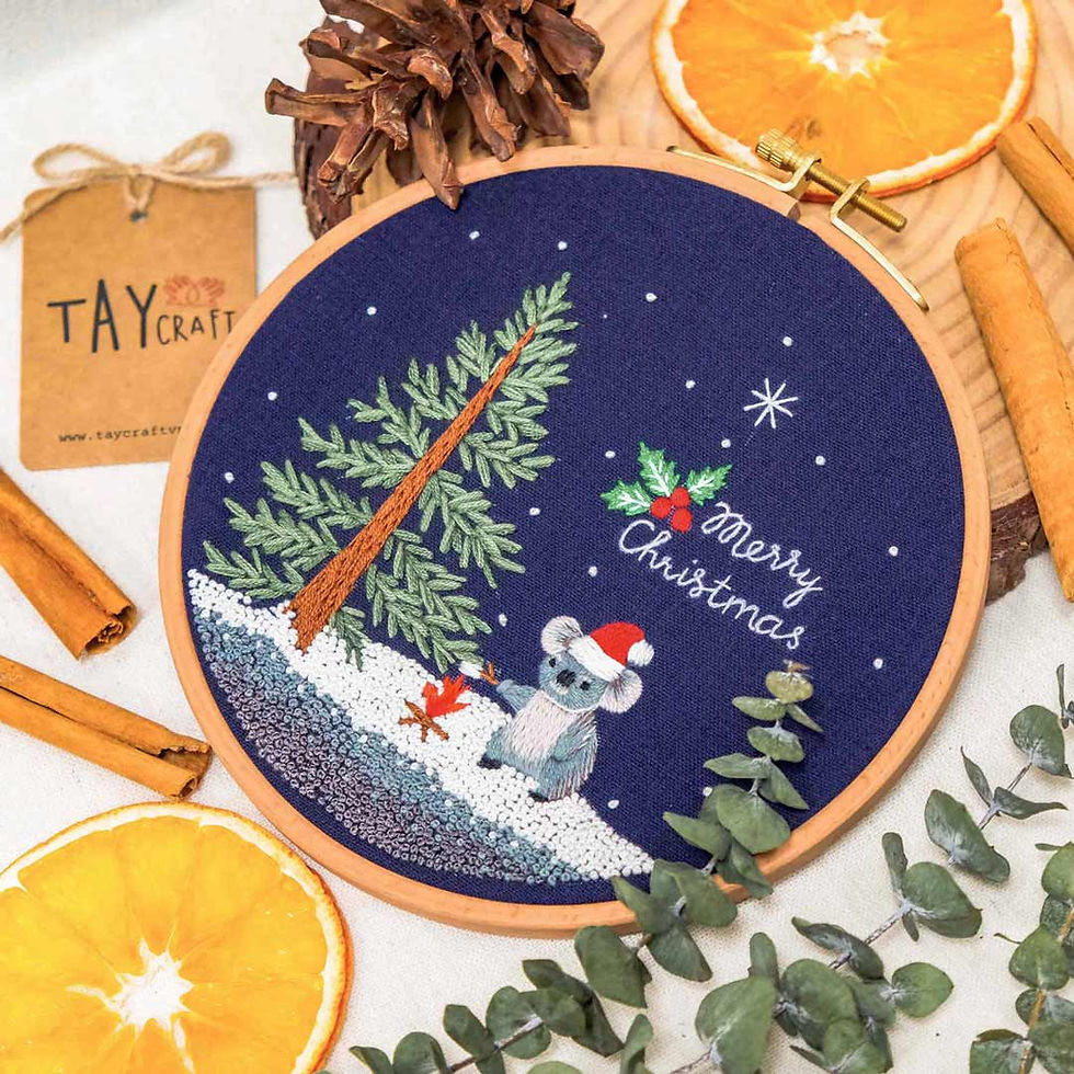 Hoop Art tranh trang trí thêu tay thủ công chủ đề Noel